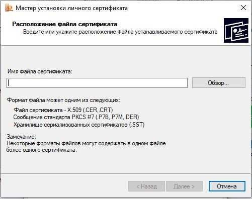 Установка сертификата электронной подписи