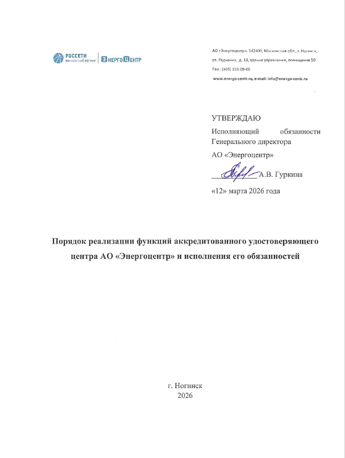 Порядок реализации функций удостоверяющего центра